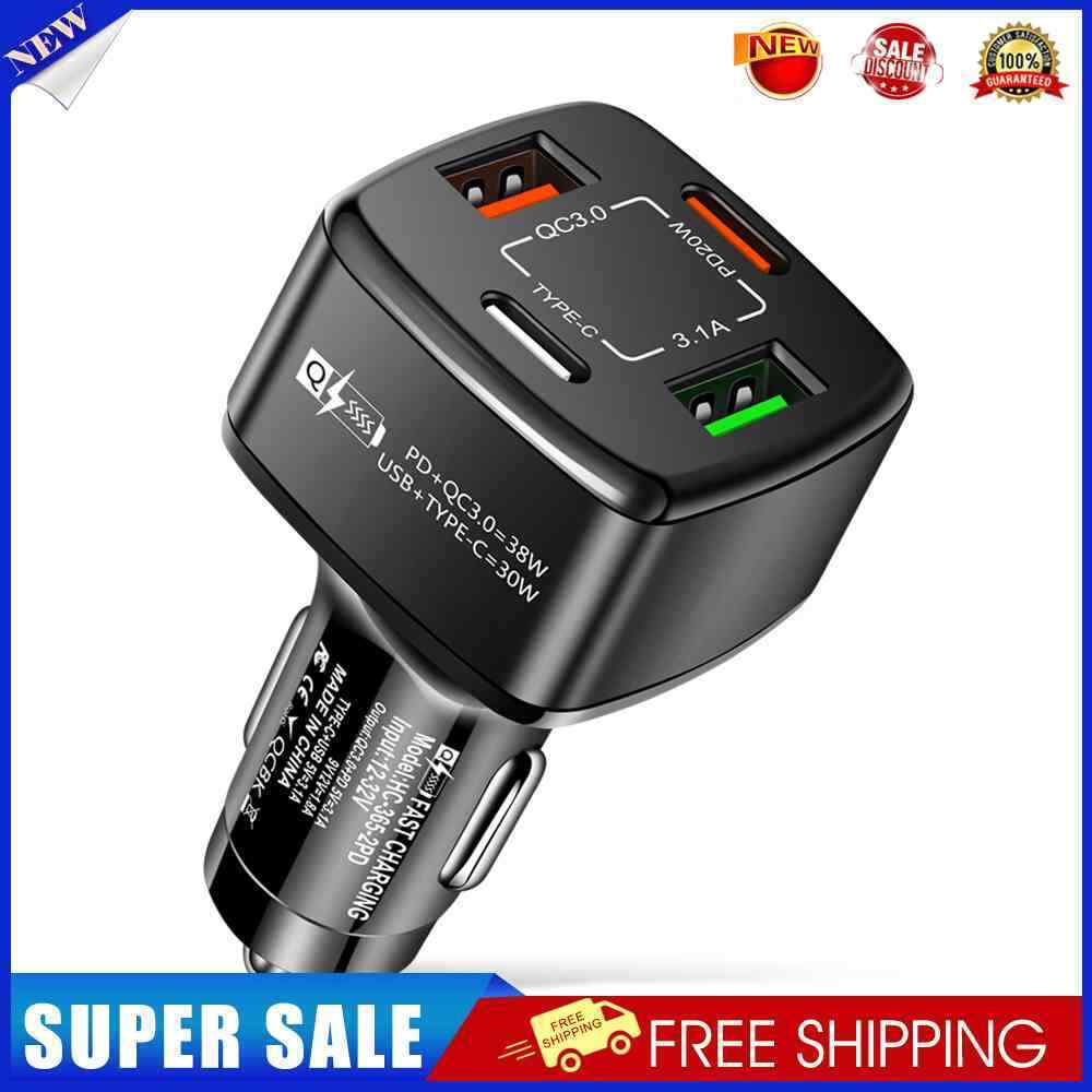 4 Ports Dual USB Type-C PD 38W Car Charger Splitter Auto Quick Fast Charging Plug Adapter for Mobile Phone
