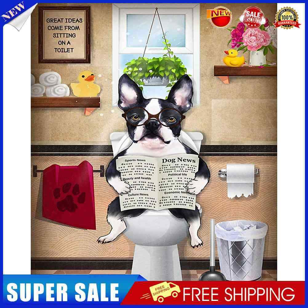 Dog on Toilet Oil Paint By Numbers Kit DIY Acrylic Painting on Canvas Frameless Drawing Picture for Adults Home Decoration Gift Wall Art Picture Craft