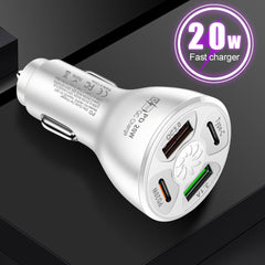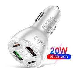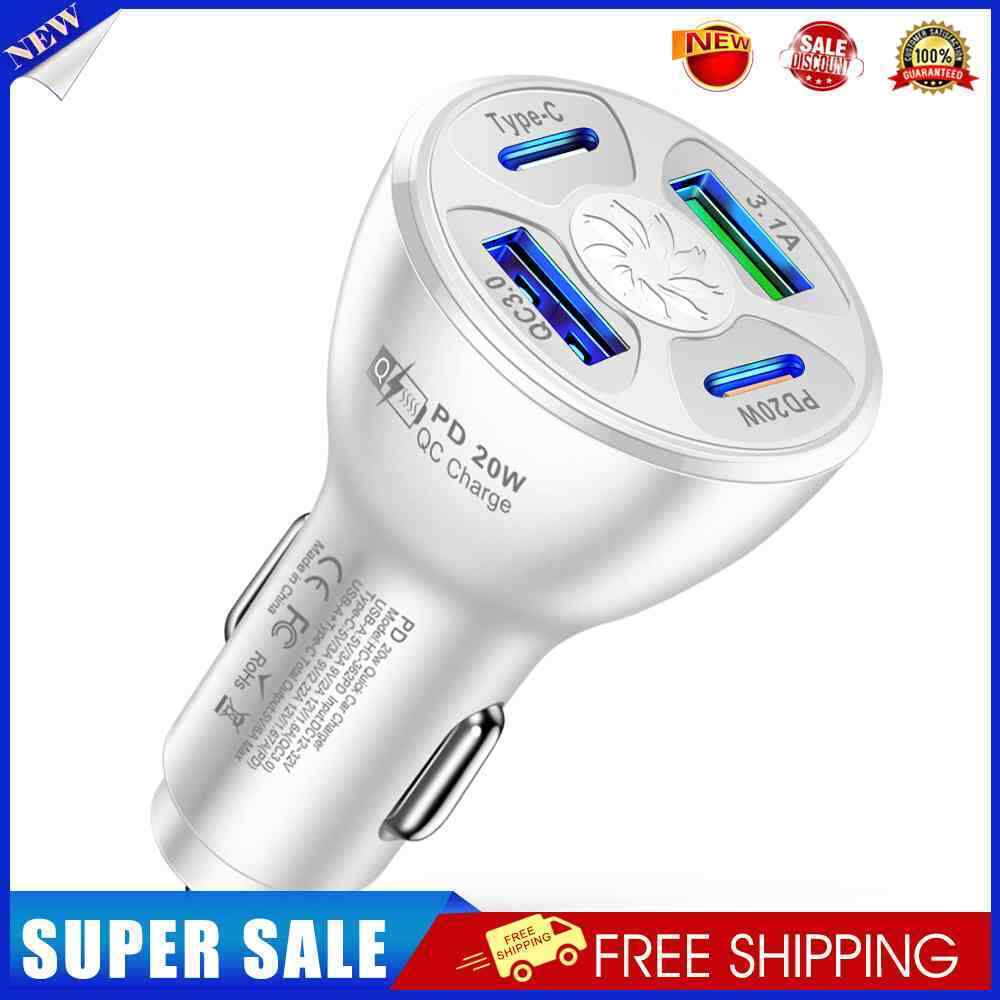 4 Ports USB Type-C PD 20W Car Charger Splitter Auto Quick Fast Charging Plug Adapter for Mobile Phone