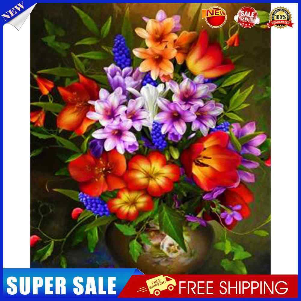 Flower Oil Paint By Numbers Kit DIY Acrylic Painting on Canvas Drawing Picture for Adults Home Decoration Gift Wall Art Picture Craft Frameless