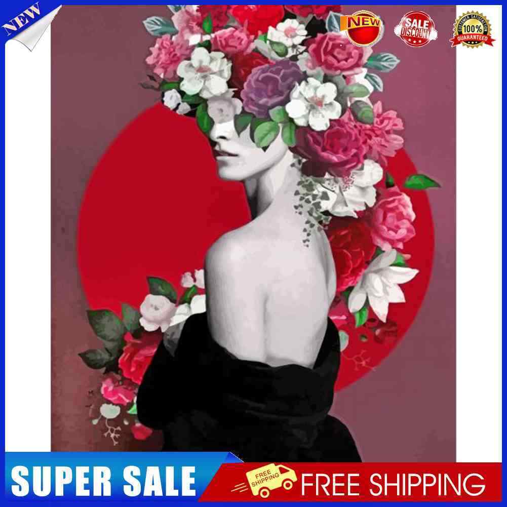 Girl with Flower Oil Paint By Numbers Kit DIY Acrylic Painting on Canvas Frameless Drawing Picture for Adults Home Decoration Gift Wall Art Picture Craft