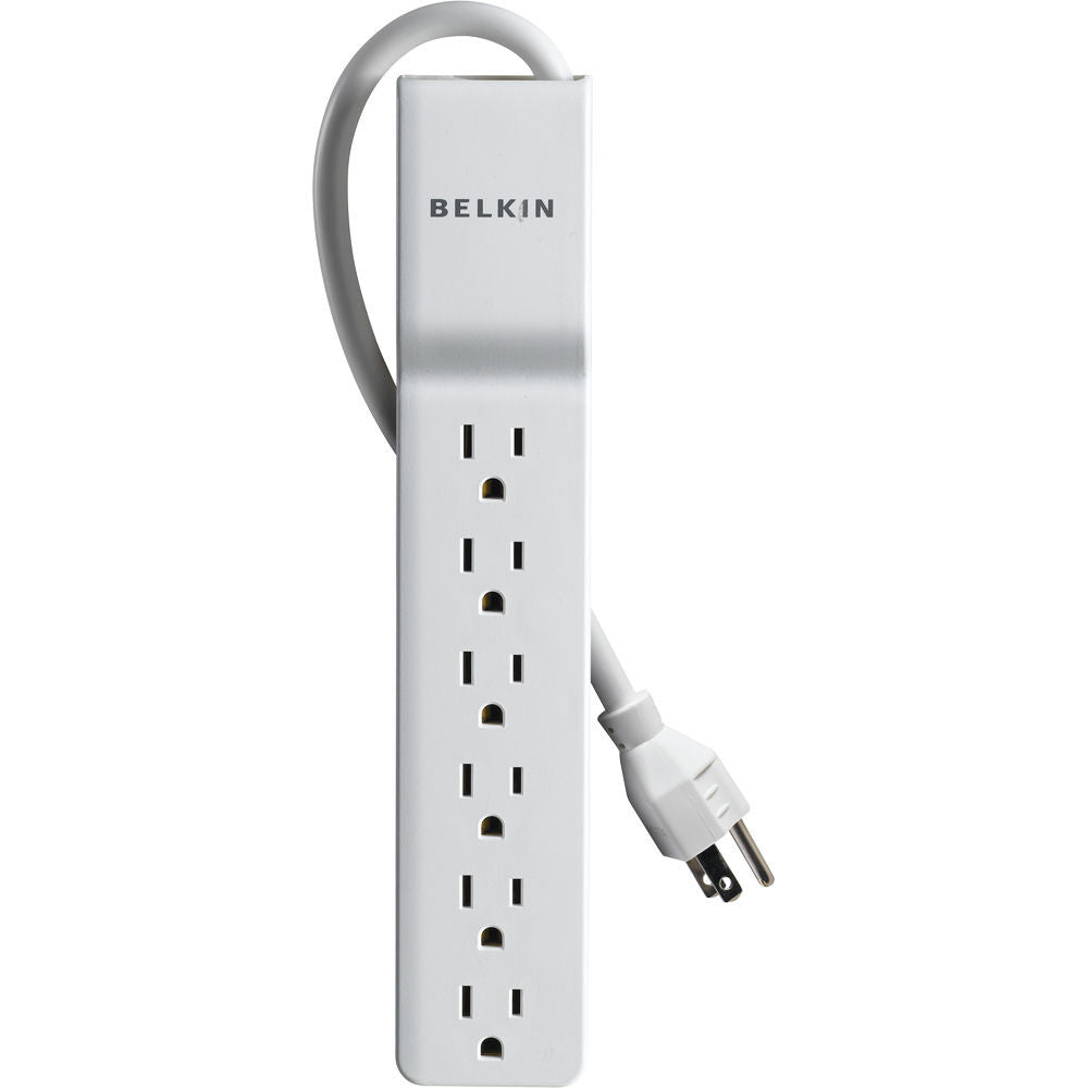 The white 6-Outlet Home/Office Surge Protector from Belkin provides premium power protection for home/office appliances and other connected devices.