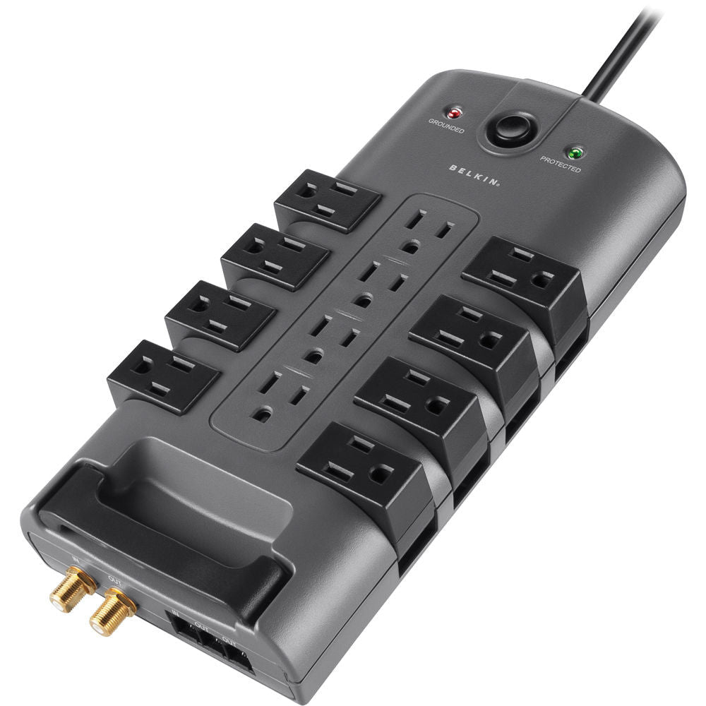 With a 4,320 Joule rating you can power nearly all of your devices including computers, laptops, tablets, smartphones, and more with the BP112230-08 PivotPlug 12-Outlet Surge Protector from Belkin . With a total of 12 outlets, 8 of which are rotating outlets, you can use this surge protector in hard to reach, tight spaces. In addition to 12 outlets, you also benefit from coaxial protection and 1-in, 2-out RJ11 ports for telephone and fax protection. The heavy-duty power cord, $300,000 connected equipment guarantee, and damage-resistant housing give you added peace of mind when using the BP112230-08 in a variety of environments.
