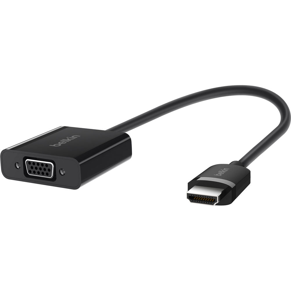 Enjoy content from laptops, smartphones, or tablets on a VGA-enabled projector or screen with the Belkin HDMI to VGA Adapter with Micro-USB Power . View your content in HD as this adapter supports up to 1920 x 1080p resolution. You can also connect speakers to this adapter for audio support thanks to its 3.5mm audio port. The adapter lets you watch content from your iPhone or iPad on a larger screen, using AirPlay and Apple TV to connect to a monitor or projector.