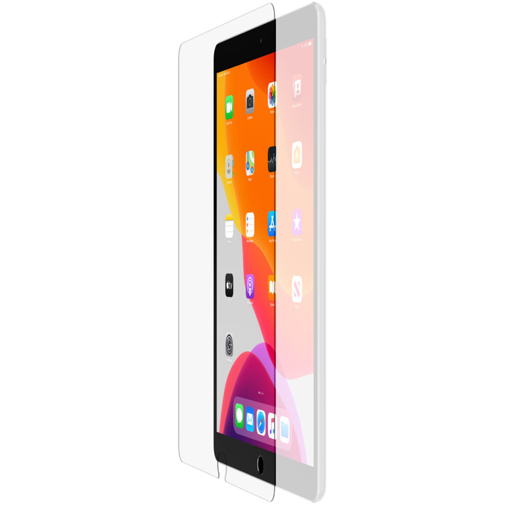 Keep your tablet safeguarded with the SCREENFORCE Tempered Glass Screen Protector for iPad Pro 10.5", Air 3, and 8th Gen from Belkin. Featuring a thin 0.29mm tempered glass surface, this protector defends your iPad from fingerprints, scratches, and impacts, even from common metal objects like keys and coins. Compatible with the Apple Pencil and Apple-brand cases, the tempered glass construction preserves touchscreen clarity and responsiveness for unaltered performance. An included Easy Align tray also ensure worry-free installation for optimized protection.
