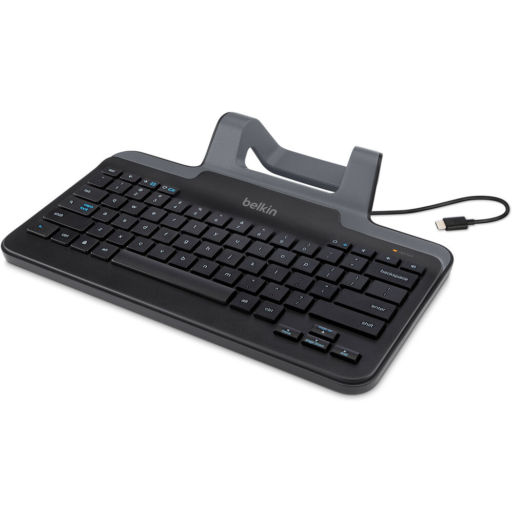Designed to work in tandem with a wide range of ChromeOS equipped tablets, the Belkin Wired Tablet Keyboard with Stand and USB-C Connector enables students to type without using an on-screen keyboard. It provides a full range of alpha-numeric keys so you can type up documents and emails with ease. An integrated stand holds your ChromeOS tablet while the connected USB-C cable offers plug-and-play utility so you can get started without downloading any additional software. Correct Connect diagnostic indicator confirms the keyboard is properly connected, easing any troubleshooting issue you may come across. It has multimedia hotkey access so you can control your media at a moment's notice. The stackable design allows you to store the keyboard in a cabinet or drawer without taking up a lot of space. This keyboard is also SBAC and PARCC complaint, ensuring a strong and stable connection that is approved for standardized testing.