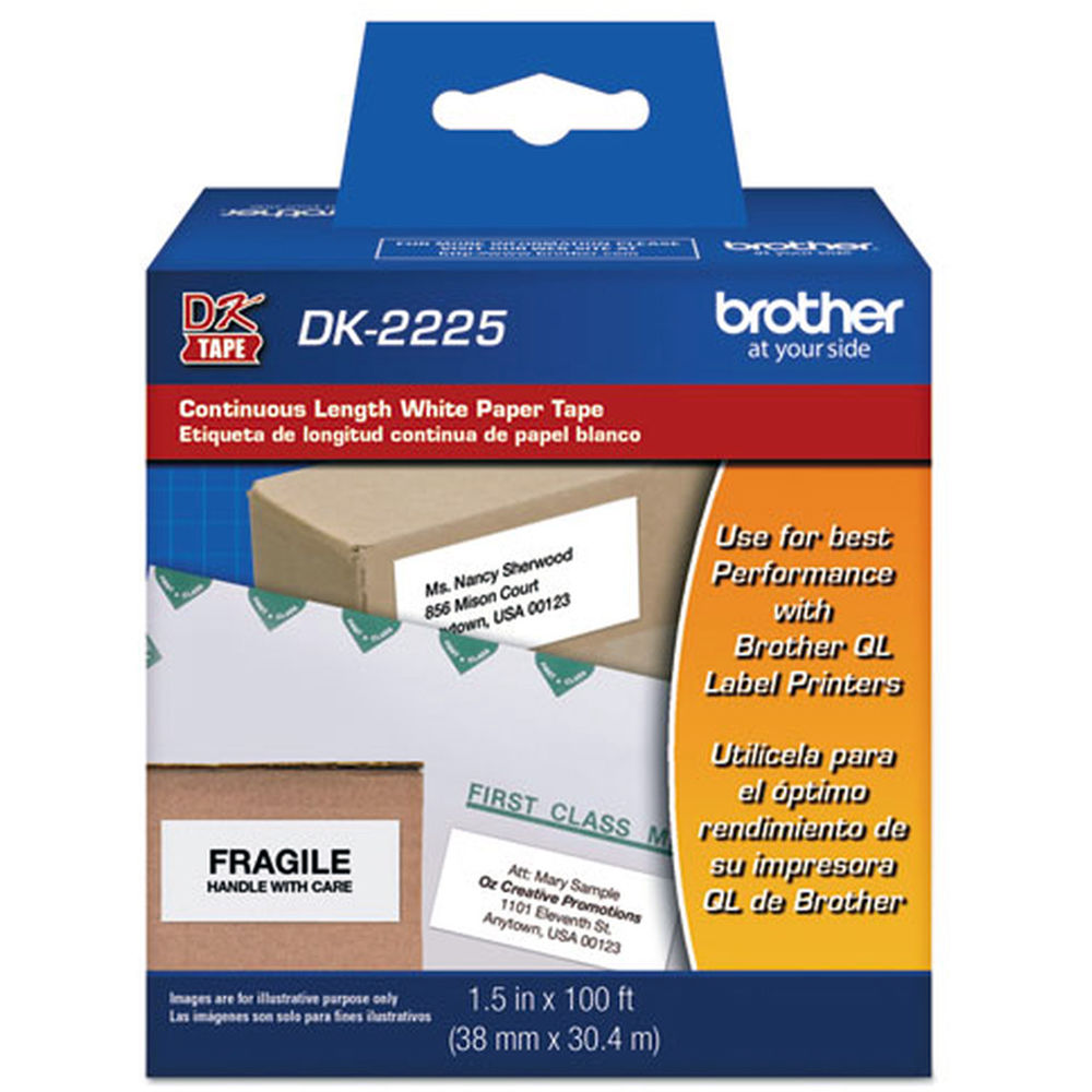 The Brother DK2225 Continuous Length white paper labels are designed for use with select Brother label printers.