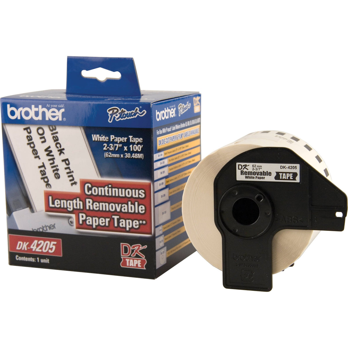 The Brother DK4205 2.4" (62 mm) Black Print On White Tape is 100' (30.4 m) long and is designed for the following models: