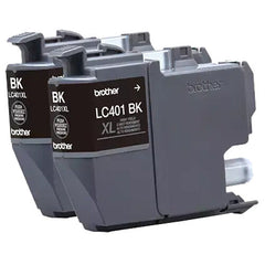 The Genuine LC401 High Yield Black Ink Cartridge Set from Brother includes two black inks each offering up to a 500-page yield. The inks are compatible with the Brother MFC-J1010DW, MFC-J1012DW, and MFC-J1170DW all-in-one inkjet printers. These Genuine edition inks produces sharp prints and vivid colors that withstand the test of time.