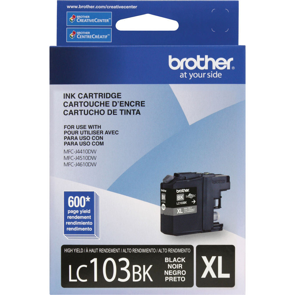 The Brother LC103BK Innobella High Yield Black Ink Cartridge yields approximately 600 pages and is designed for the following printers: