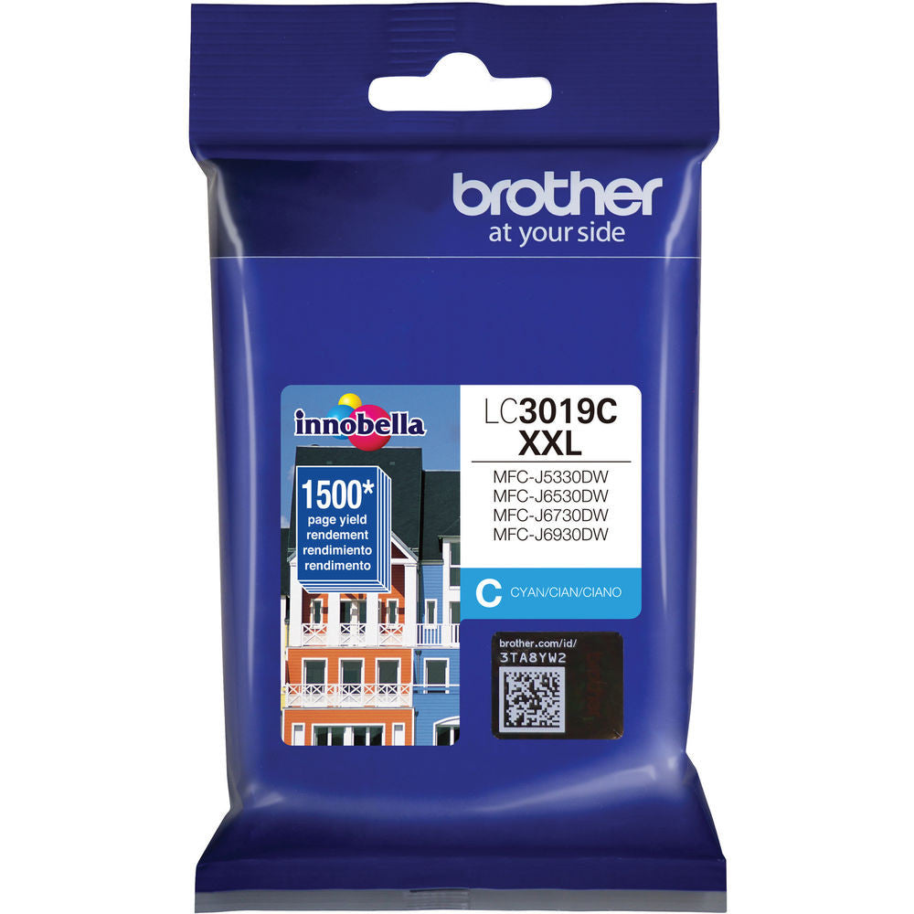 Print another 1500 letter-sized pages with your select Brother printer with this replacement or spare LC3019C Super High Yield XXL Cyan Ink Cartridge .