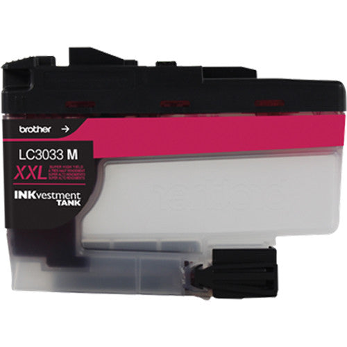 Compatible with select Brother printers, this magenta LC3033 Super High-Yield INKvestment Tank Cartridge works with other inkjet cartridges to deliver quality, detailed prints for a rated yield of 1500 pages.