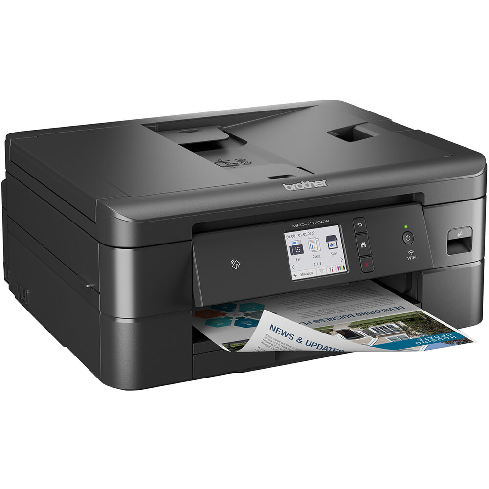 The Brother MFC-J1170DW is designed as an all-in-one color inkjet solution for your home and small office needs. It has print, scan, copy, and fax functions and offers a print resolution of 1200 x 600 dpi. The compact printer supports up to legal size paper in the 150-sheet main paper tray and in the single-sheet, manual-feed multipurpose tray. Automatic two-sided printing is supported with up to letter size paper. For scans and copies, a 20-sheet automatic document feeder (ADF) fits up to legal size paper.