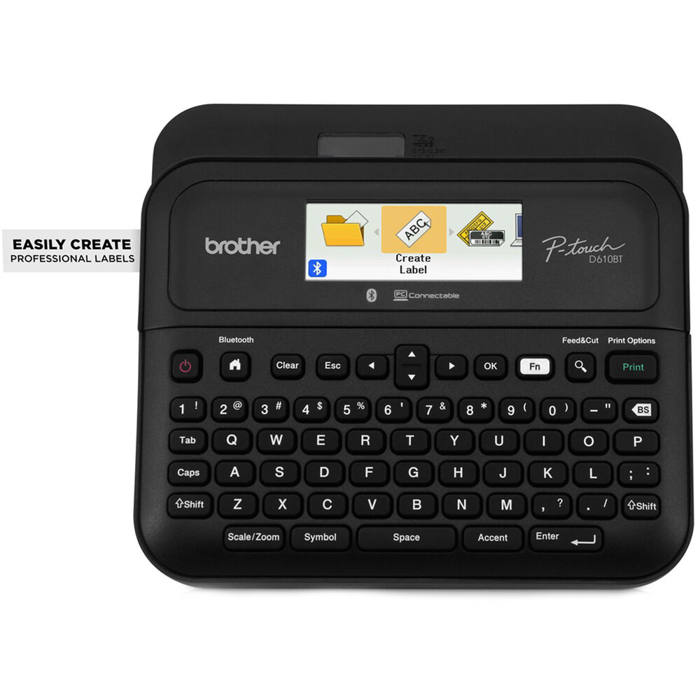 Give everyone in your office the ability to be more or organized and productive with the PTD610BT P-Touch Business Professional Connected Label Maker from Brother. Proper labeling in the workplace, or at home, can make life easier. Easier to locate items, know what's inside boxes, and more. The 610BT lets everyone in the office do this from the convenience of their desk or mobile device, with the included P-Touch Editor software or iPrint&Label app. In addition to standard labels, you can print barcodes, QR codes, and even add your company logo. This makes the 610BT ideal for not just the office, but also the warehouse or at public events, helping to track inventory and let guests scan and download information online.