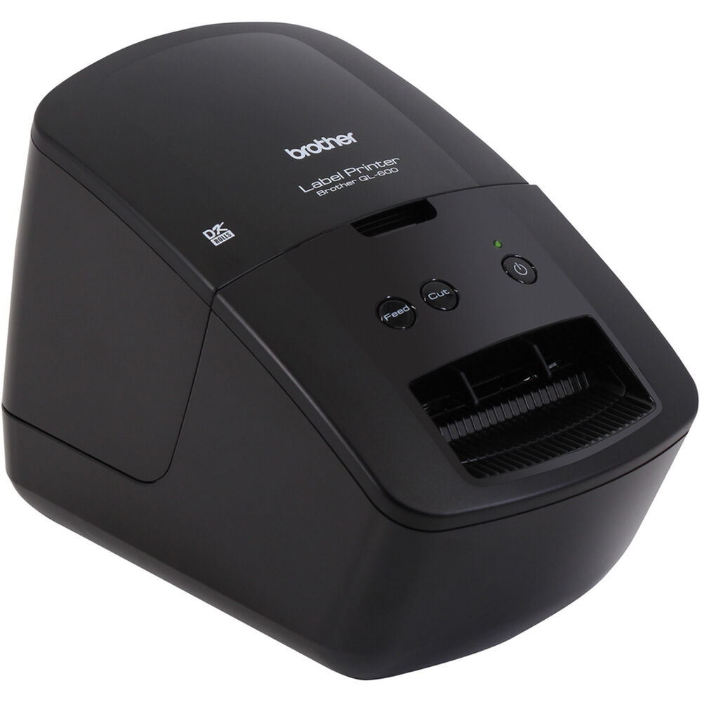 A USB cable is included in the box, and users can install the included P-Touch Editor software for easy label creation. Take advantage of rotate, vertical and mirror printing, as well as date and time stamps. Up to 1379 symbols are supported by a clipart library in the included software. Print resolution measures up to 300 x 600 pixels for crisp legibility. The QL-600 is compatible with DK label and tape types. In addition to Windows 7 and later or Mac OS X 10.13 and later, this printer is also compatible with Linux. Besides editing software and a USB cable, a power cord and pack of DK-2205 sample labels is also included.