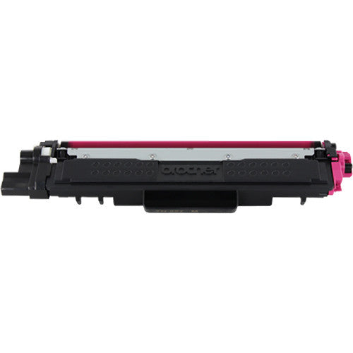 This magenta TN227M High-Yield Toner Cartridge from Brother works with other toner cartridges to output vibrant and detailed documents on select Brother printers. It is rated for 2300 pages.