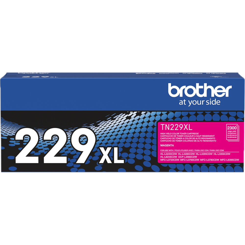 This magenta High-Yield TN229XLM Toner from Brother works with other toner cartridges to output vibrant and detailed documents on select Brother printers. It is rated for 2,300 pages.