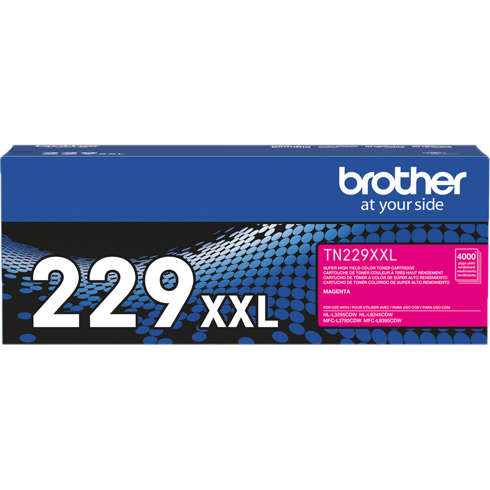 This magenta Super High-Yield TN229XXLM Toner from Brother works with other toner cartridges to output vibrant and detailed documents on select Brother printers. It is rated for 4,000 pages.