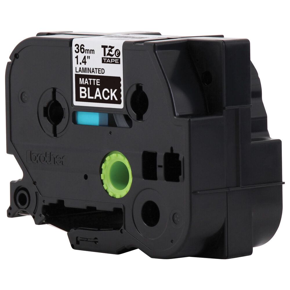 The Brother TZe-M365 Label Tape for P-Touch Labelers measures 1.4" x 26.2'. The tape is ideal for store, business, office, or commercial labeling. The sturdy laminated adhesive backing sticks easily to a variety of surfaces, and the sharp white print on matte black laminated label tape stands out and helps get your labels noticed. It also works in normal indoor and outdoor conditions.