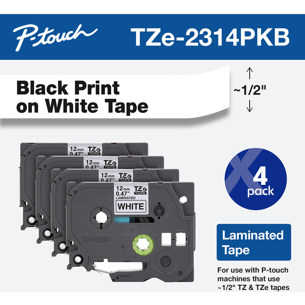 This 4-pack of black-on-white TZe231 Laminated Tape for P-Touch Labelers measures 1/2" x 26.2' and features their standard adhesive. The tape is ideal for everyday applications, normal indoor and outdoor conditions, and works best on smooth, flat surfaces. The tape is designed for the following label printers: