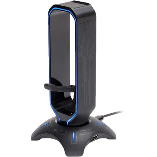 Showcase your gaming headset with the RGB Gaming Headset Stand with Mouse Bungee and USB 2.0. The RGB lighting provides up to seven color cycling options for you to choose from. The dual USB 2.0 ports allow you to connect gaming peripherals such as keyboards, mice, external drives, and more. In the center of the stand is an integrated mouse bungee, which helps to eliminate snagged cables and cable bunching during gaming sessions.