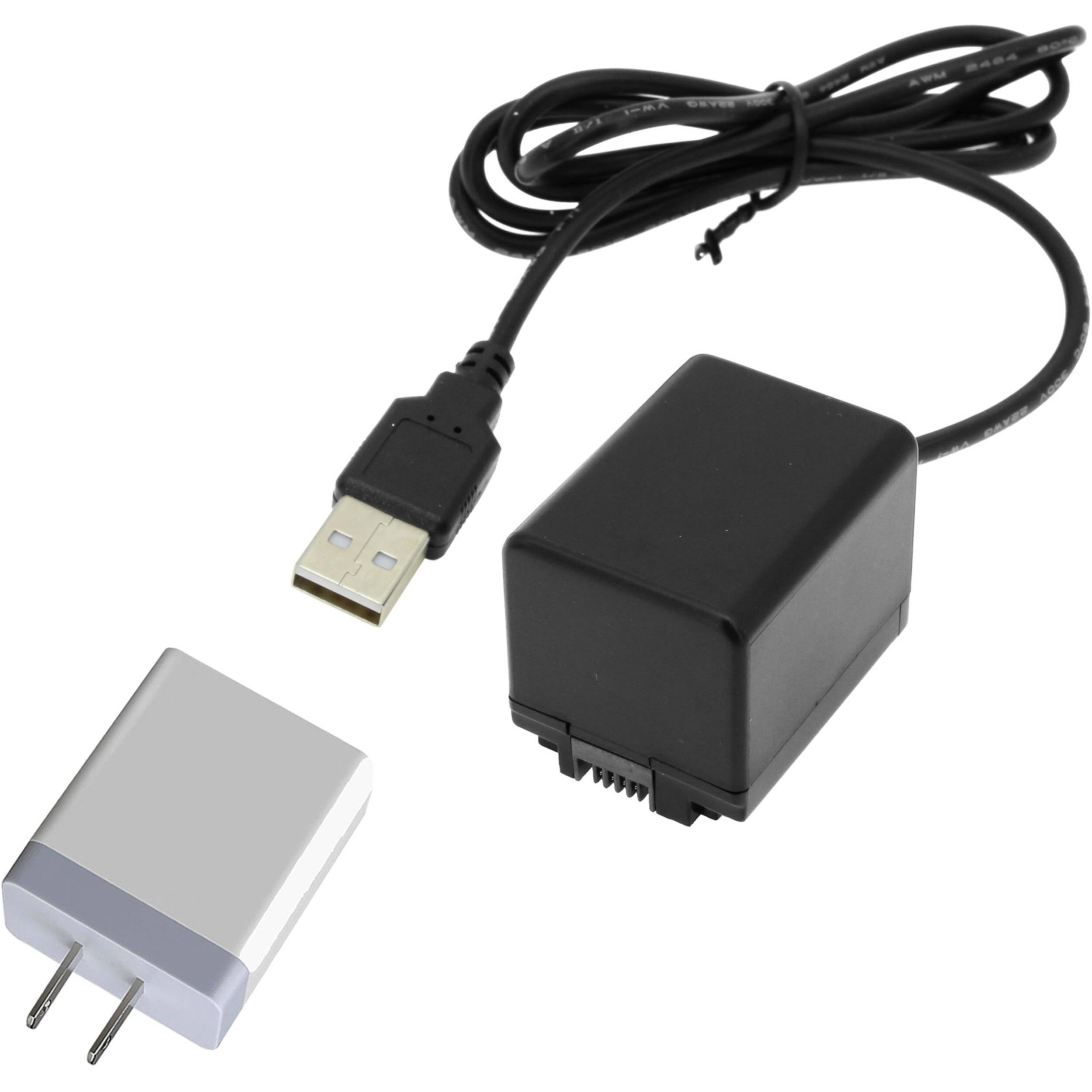 Power your Canon camcorder with a USB power supply using this 40" USB Type-A to Canon BP-727 Dummy Battery and Power Supply Bundle from GyroVu. A male USB Type-A connector can accept 5 VDC of power from the included 3.1A high-power USB power supply. Stabilized 7.4V is then output via the Canon BP-727 dummy battery into your camera.