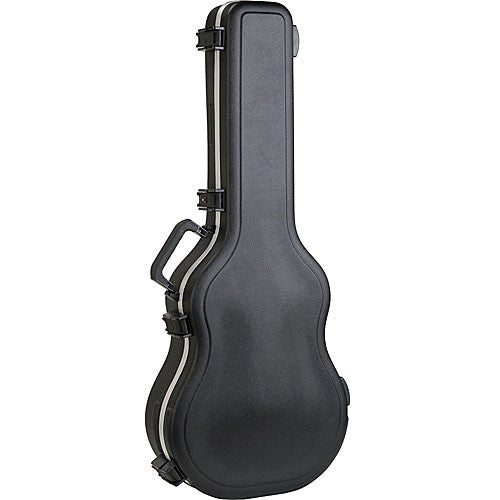 The SKB SKB-000 000 Sized Acoustic Guitar Case (Black) is designed to fit the thinner body of 000 acoustic guitars. The case has full length neck support to cradle the vintage V-neck design such as Taylor, Martin, Johnson and Santa Cruz 000 sized guitars. There are molded-in bumpers to provide valance protection, a heavy-duty deluxe plush interior, and TSA recognized and accepted locks.