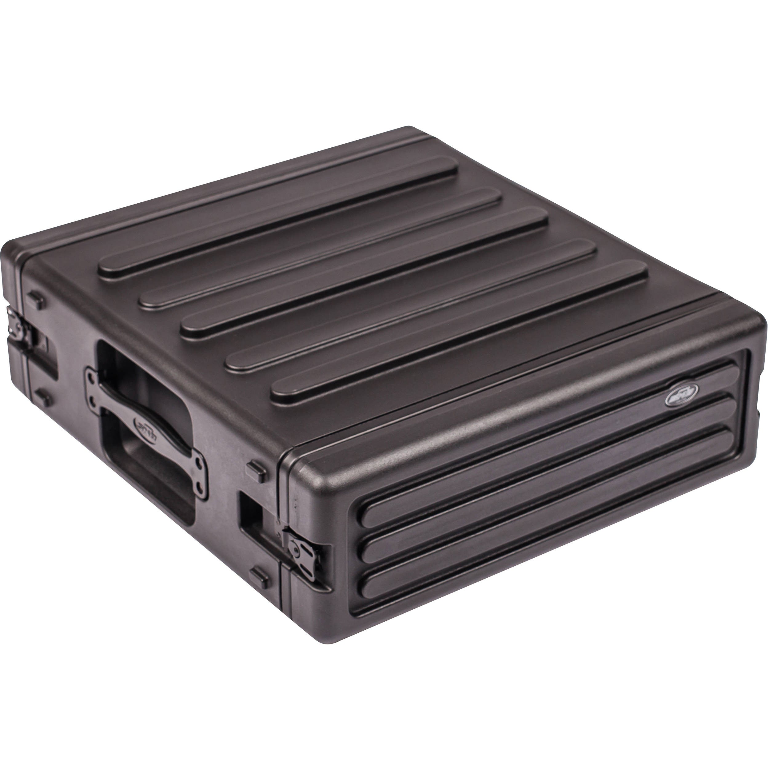 The 1SKB-R3U 3 RU Roto-Molded Rack from SKB is a 3 RU case that meets the needs of musicians and pro-audio engineers, and features gasket-sealed, full front and rear covers for easy access. With recessed, steel twist latches, the molded polyethylene case can be used to transport studio gear and protect it from moisture and dust.