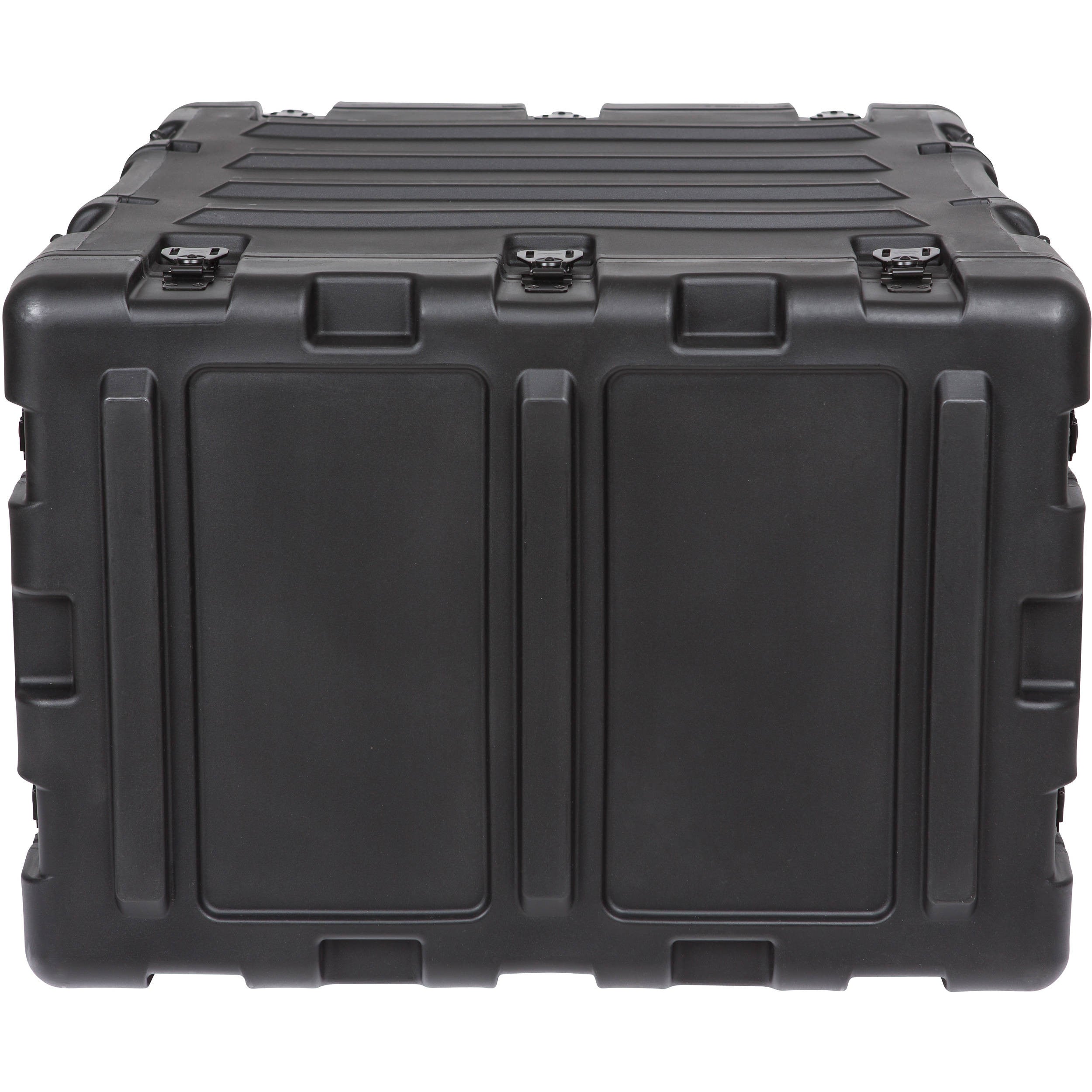 The Shock Rack is lightweight, shockproof, watertight, dustproof, heat and chemical resistant, perfect for protecting and transporting your sensitive electronic equipment. The rugged roto-molded shell ensures industry leading strength and impact resistance. The standard commercial off the shelf (COTS) case comes with 2" deep front and rear lids to accommodate rack gear that is longer than 20". Molded-in stacking ribs and lugs are designed to stack with all SKB 3RR and 3RS cases, as well as competitive manufacturer cases, and feature black powder coated stainless steel hardware that is recessed for protection and 4 comfort grip spring loaded lift handles which allow for easy movement. An automatic pressure relief valve is another standard feature along with gasket sealed lids that include convenient lid hangers to store your lids when your equipment is in operation. Coupling straps are included for securing the racks together when stacked.