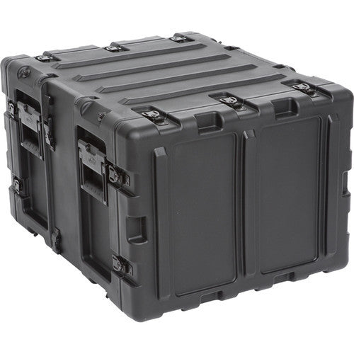 The Shock Rack is lightweight, shockproof, watertight, dustproof, heat and chemical resistant, perfect for protecting and transporting your sensitive electronic equipment. The rugged roto-molded shell ensures industry leading strength and impact resistance. The standard commercial off the shelf (COTS) case comes with 2" deep front and rear lids to accommodate rack gear that is longer than 20". Molded-in stacking ribs and lugs are designed to stack with all SKB 3RR and 3RS cases, as well as competitive manufacturer cases, and feature black powder coated stainless steel hardware that is recessed for protection and 4 comfort grip spring loaded lift handles which allow for easy movement. An automatic pressure relief valve is another standard feature along with gasket sealed lids that include convenient lid hangers to store your lids when your equipment is in operation. Coupling straps are included for securing the racks together when stacked.