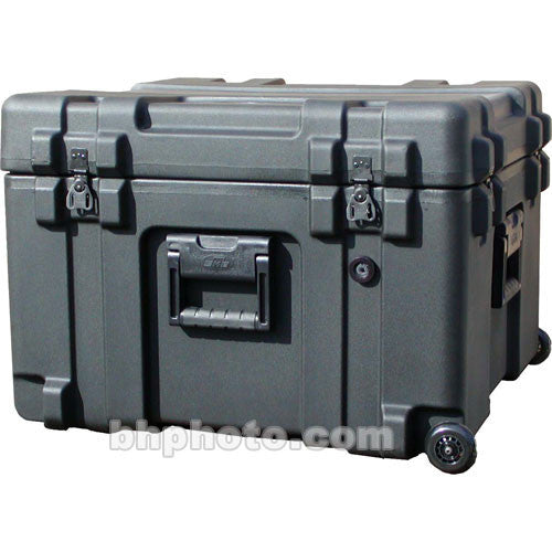 The SKB 3R2423-17B-EW Mil-Standard Utility Case is designed to meet the most demanding military specifications. The case is roto-molded for strength and durability with an LLPDE shell for maximum impact resistance. It is water proof with solid stainless steel latches and hinges that will withstand the most demanding shipping conditions and they are padlock lockable. This case has a retractable pull handle and built in wheels.