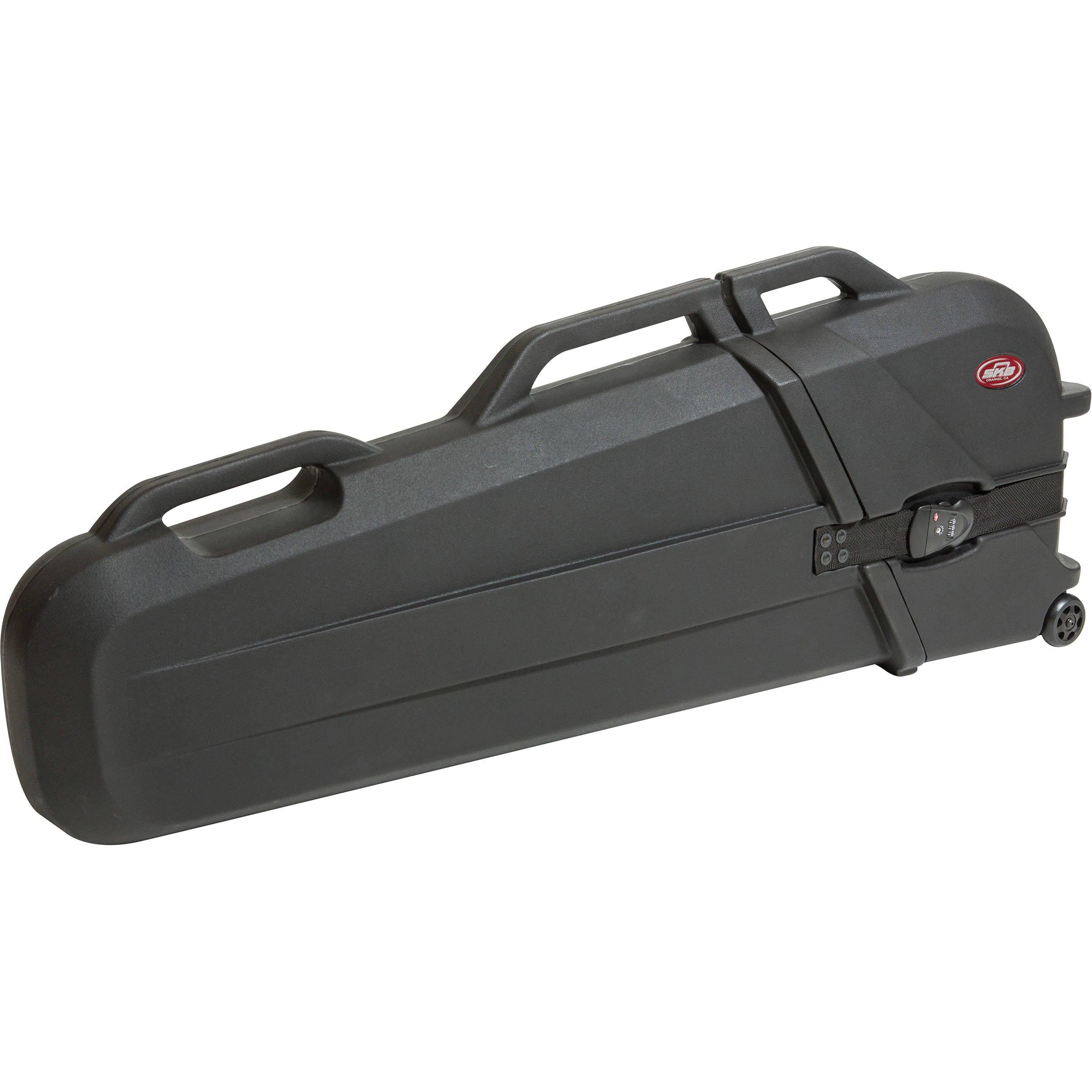 The 1SKB-44RW ATA Roto Electric Bass Case w/TSA Lock is a roto-molded hard clamshell "bass safe" case. The case was designed to help insure secure instrument travel protection for the traveling musician with its TSA recognized strap lock closure. It features roto molding for durability, is ATA compliant, and includes wheels, and an ergonomically designed handle.