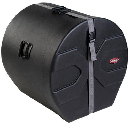 The black 18 x 20" Bass Drum Case from SKB is tough-minded, durable case for your valuable drum. It's manufactured to accommodate one drum within its rotationally molded polyethylene frame and protect your instrument both inside and outside. The exterior is a hard shell, D-shaped design and accented with SKB's Roto-X molded pattern that allows you to stack similar cases. The inside is padded to be extra gentle on your drum.