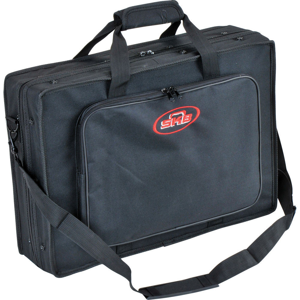 The SKB Controller Soft Case is a padded canvas case with a durable 600 Denier exterior layered with rigid foam and a padded interior. It's designed for hard-case protection and canvas bag portability. The case accommodates popular DJ performance controllers or small MIDI controller keyboards. Besides the padded interior, it also has a padded shoulder strap and a padded carrying handle. Plus, it features a heavy duty double zipper and a convenient exterior accessory pouch. It can carry products like the American Audio VMS4 MIDI Station / DJ Controller or the M-Audio Torq Xponent DJ Performance Controller, as well as other similar devices.