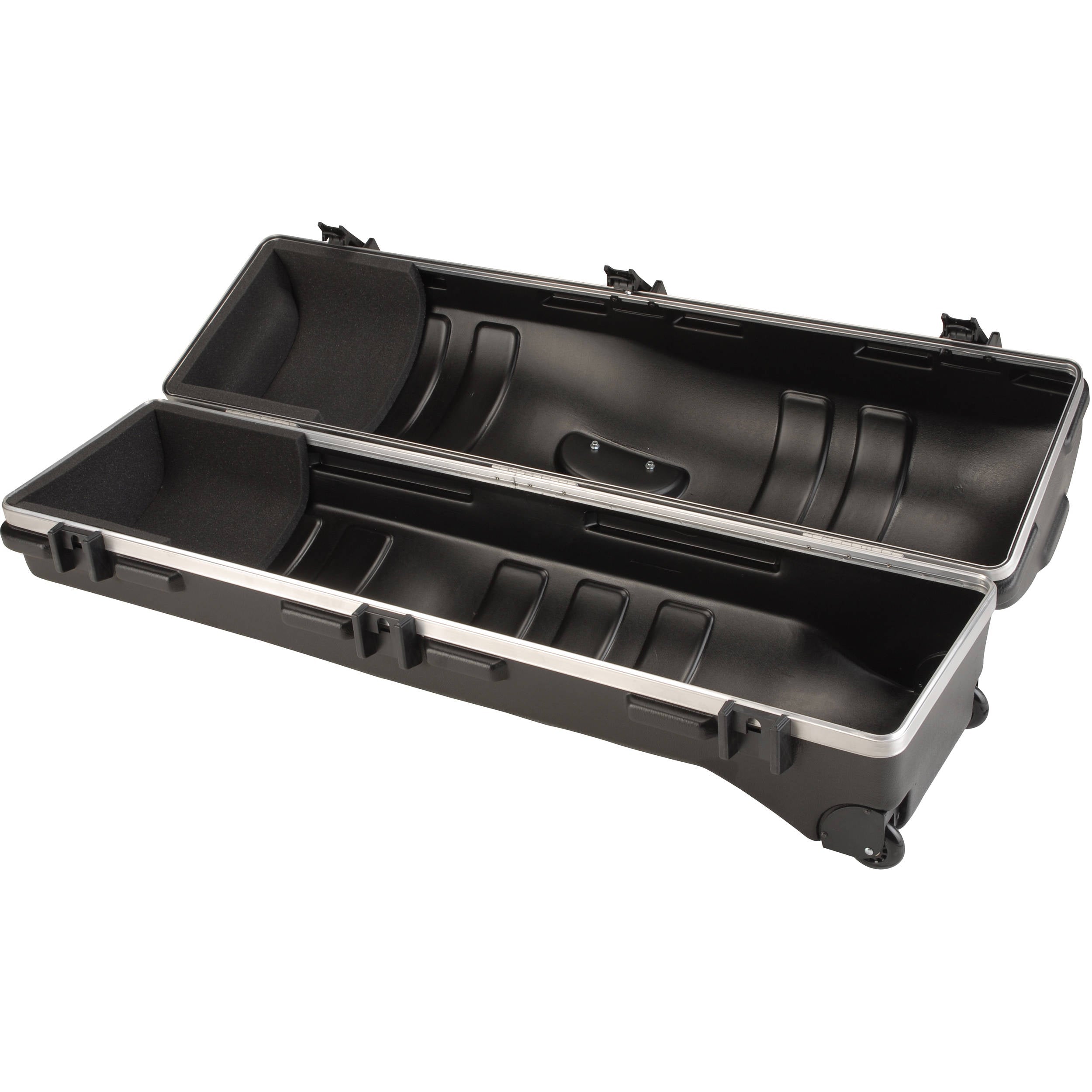 Score a hole-in-one with the tough, black, wheeled Deluxe ATA Staff Golf Travel Case from SKB . This case is contoured to hold cart bags, carry bags, and drivers up to 49". For strength and durability, the case is made of tough polyethylene and exceeds ATA 300 category 1 rating for airline travel. Carry the case with the molded-in handles or roll with the built-in wheels. The case has lockable latches and a built-in TSA locking system. This case is made in the USA.