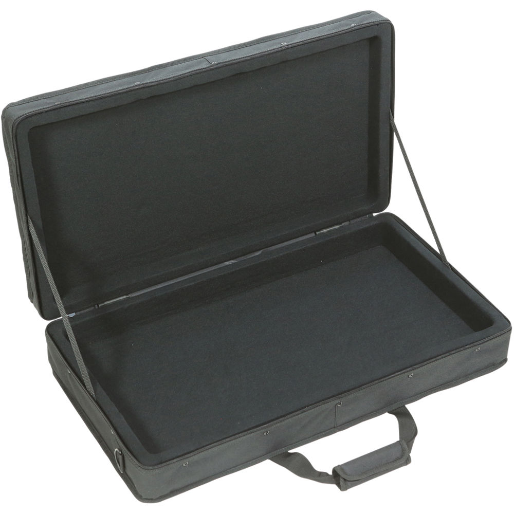 The DJ/Keyboard Controller Soft Case from SKB offers a portable case for DJ performance controllers or small MIDI controller keyboards such as the Pioneer DDJ-SX. The padded interior includes a 1.5" pad of convoluted foam which allows the case to be compatible with items of different heights. The exterior is made from 600 Denier layered with rigid foam and featuress an accessory pouch. The case also has a double pull zipper, carrying handle, and shoulder strap for transport.