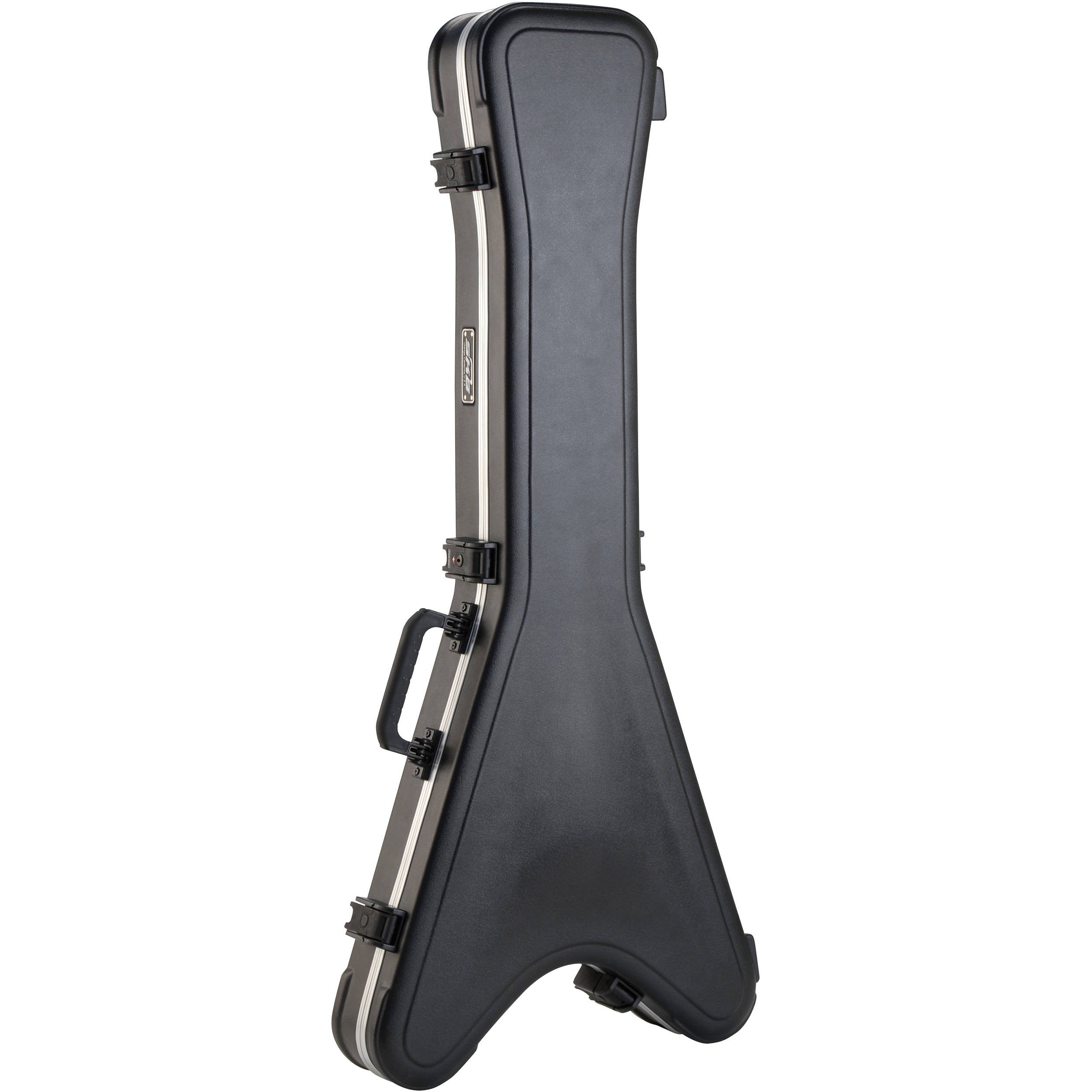 The Gibson Flying V Hardshell Guitar Case from SKB is designed to fit most Gibson Flying V guitars. The case features plush lining over an EPS foam interior with neck support to keep the guitar from slipping during transport. The exterior is constructed of ABS polymer and has bumper valance support, 4 injection-molded feet, and an over-molded carrying handle. Fiberglass reinforces the nylon trigger release latches which are recognized and accepted by the TSA.