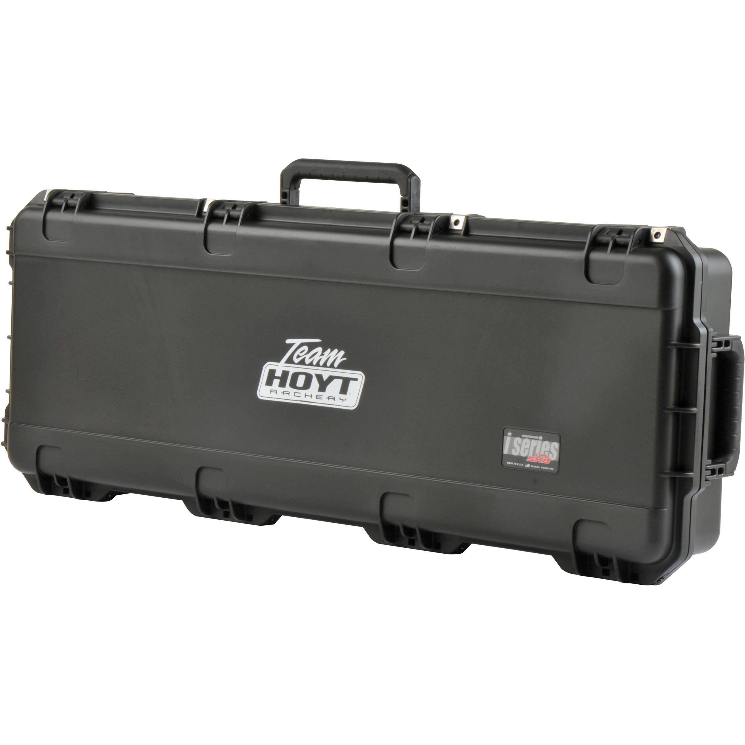 The Hoyt 4214 Parallel Limb Bow Case has four trigger latches, four reinforced padlock locations, cushioned snap down handles on three sides, and recessed, in-line skate style wheels, which make transporting your gear around the world both worry- and trouble-free. The interior of the 3i-4214-PL MIL-STD Injection Molded Parallel Limb Case features a custom foam insert for secure positioning and cushioning of your gear. A waterjet cut foam arrow system that holds up to a dozen arrows is included. The Hoyt 4214 Parallel Limb Bow Case has a uni-body design, which eliminates the need for excessive metal reinforcing hardware. This injection molded waterproof case is constructed of strong polypropylene copolymer resin and features a gasketed, waterproof and dustproof, submersible design (IP67) that is resistant to corrosion and impact damage. The molded-in hinge with stainless steel hinge pins, patented "trigger release" latch system, comfortable, snap-down rubber over-molded cushion grip handles, secure stacking, and a MIL-STD-648C automatic ambient pressure equalization valve all contribute to its military grade design. The Hoyt 4214 Parallel Limb Bow Case is covered by SKB's "Million Mile Guaranty" (Lifetime Warranty) and the $1500 Content Coverage Warranty if your gear is damaged by an airline.Interior Dimensions | 39.0 X 13.50 X 6.00" (99.0 x 31.3 x 15.25 cm) |