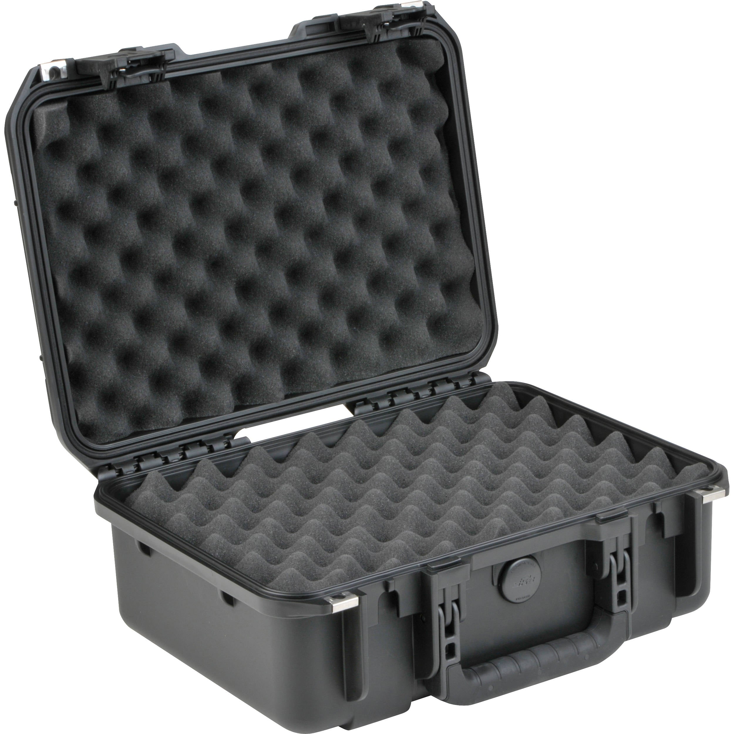 The black iSeries 1510-6 Waterproof Utility Case with Layered Foam from SKB features a layered foam interior which can be cut to custom fit the items you are transporting. The injection-molded case is made of polypropylene copolymer resin and is waterproof, gasketed, dust-tight, and submersible (MIL-C-4150J). The case is also resistant to UV, solvents, corrosion, fungus, and impact damage. Molded-in hinges and trigger release latches add to the security of the case. A comfortable rubber overmolded cushion grip handle snaps into vertical/horizontal place for convenient carrying. A built-in automatic ambient pressure equalization valve (MIL-STD-648C) allows for safe air travel.