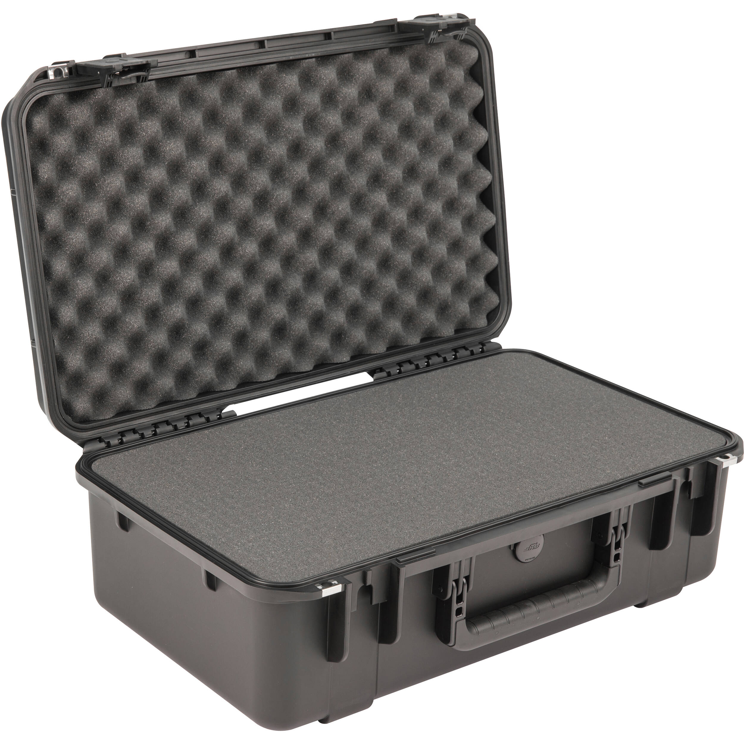 The black iSeries 2313-8 Case with Cubed Foam from SKB is made from molded high-strength polypropylene copolymer resin. This case features a gasket-sealed, water and dust tight design that is submersible and corrosion, UV, solvent, fungus, and impact resistant. Comfortably carry your case with the rubber overmolded cushion grip handles. Easily transport your case even when filled with heavy gear with the retractable handle and built-in wheels.