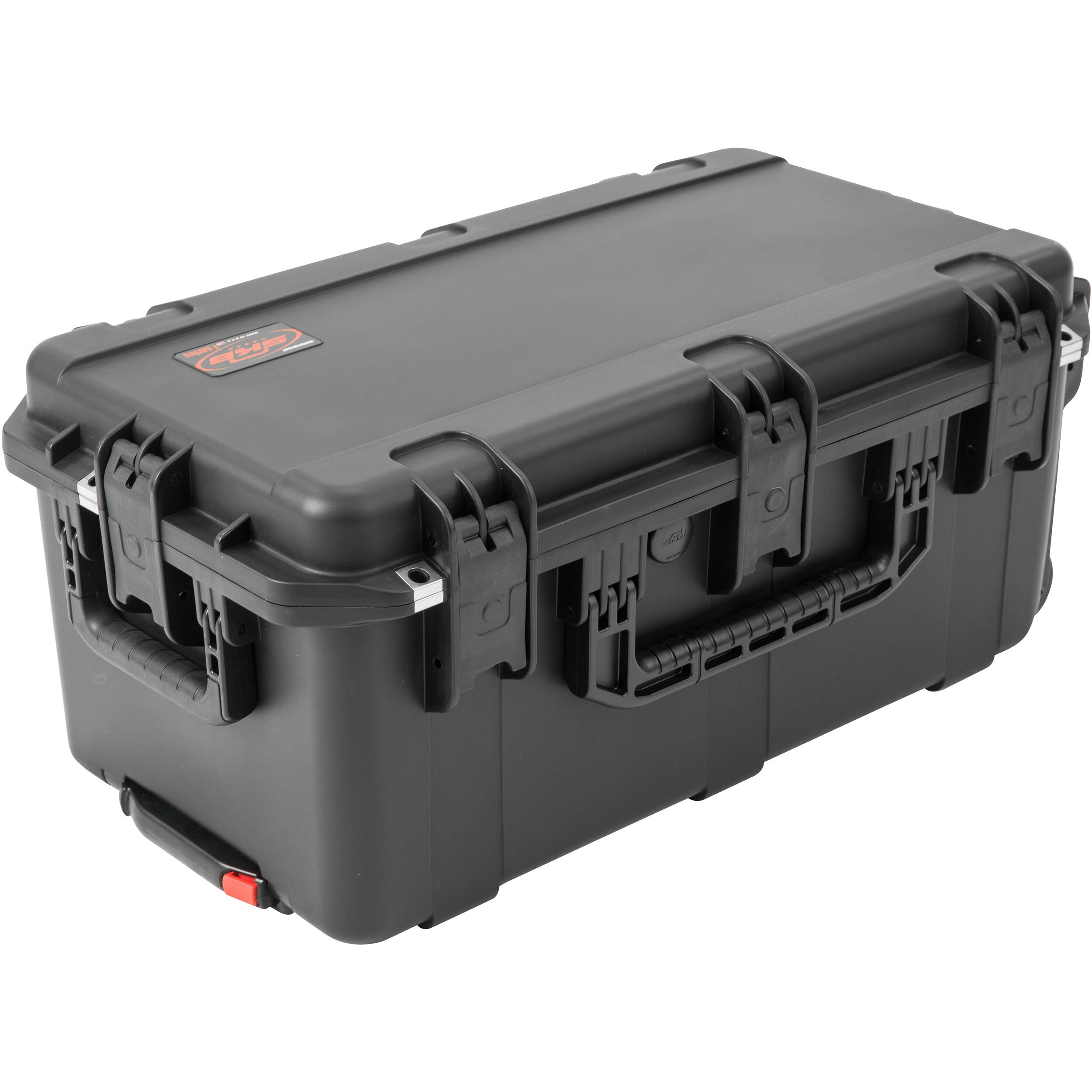 This iSeries 2513-10 Wheeled Case from SKB is made from high-strength copolymer resin and features a gasket-sealed, dust and waterproof, submersible design that is resistant to corrosion and impact damage. It is also resistant to UV, solvents, and fungus. It features a molded-in hinge, patented trigger-release latches, a snap-down, rubber, over-molded cushion grip handle, and an automatic ambient pressure equalization valve.