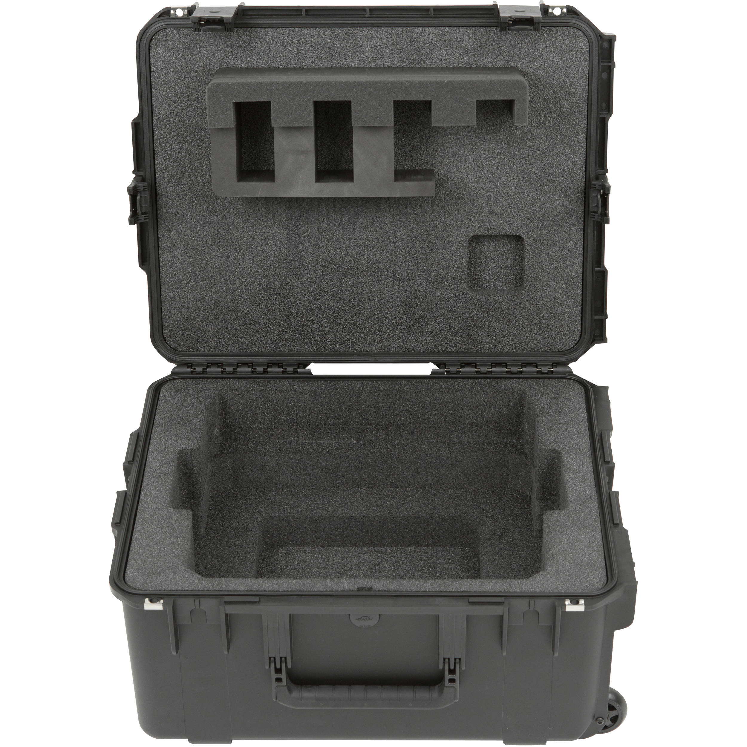 The SKB iSeries Case for Blackmagic Design ATEM CCP, ATEM 1 M/E Advanced, or DaVinci Mini Panel features ultrahigh-strength polypropylene copolymer resin construction, with custom-cut PE foam. It is dust- and water-tight, and can be completely submerged in water. It is resistant to impact damage and features a molded hinge, folding overmolded cushion grip handles, and an automatic pressure equalization valve. The case is resistant to degradation caused by UV, solvents, corrosion, and fungus.
