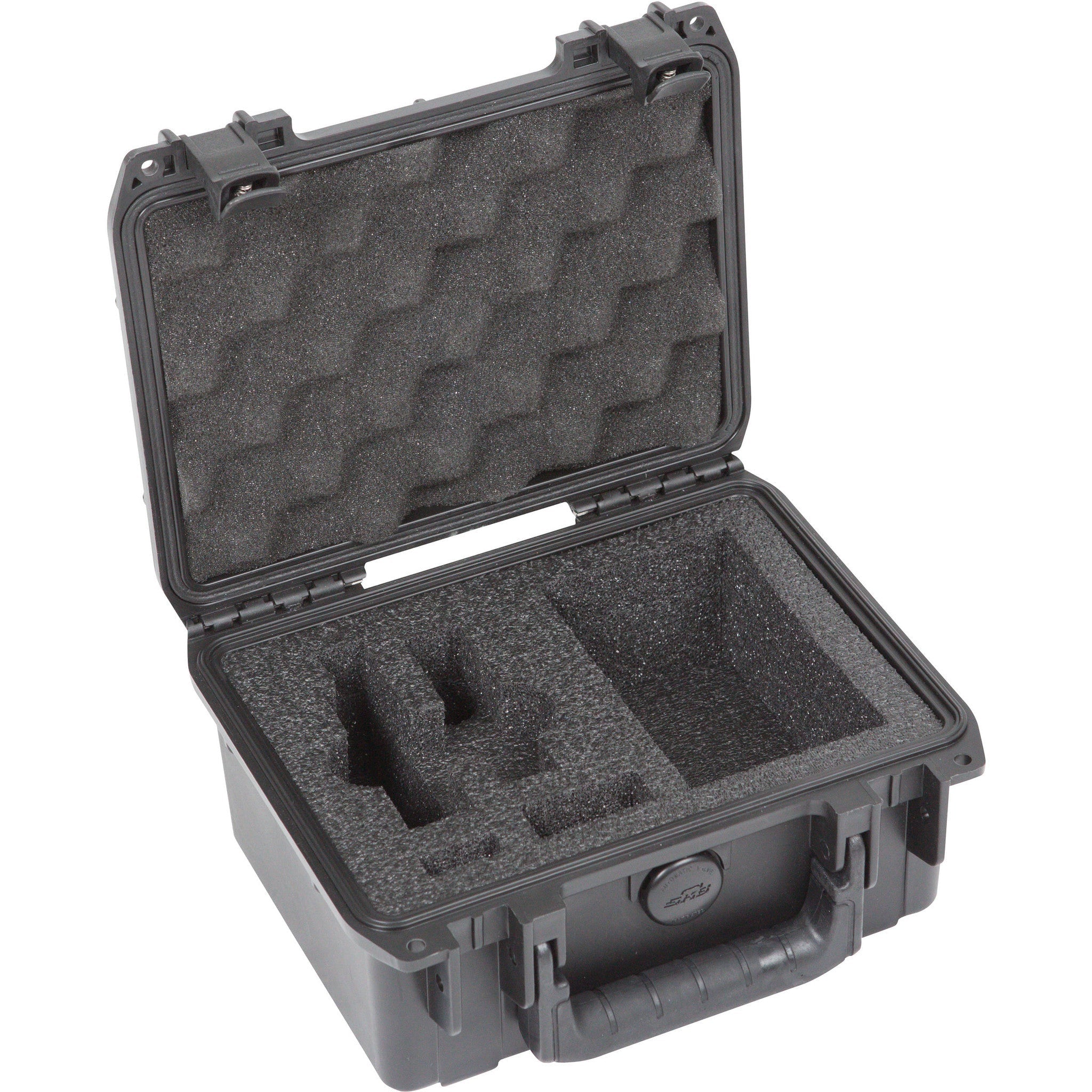 With stainless steel molded-in hinges, a trigger-release latch system and a comfortable snap-down rubber over-molded cushion grip handle, the case has an automatic ambient pressure equalization valve (MIL-STD-648C), which prevents pressure buildup of gasses and vapors inside the case. Additionally, the interior of the case features custom-cut PE (polyethylene) foam that can accommodate a Sennheiser AVX transmitter, a wireless bodypack receiver, a lavalier microphone, plus additional accessories.