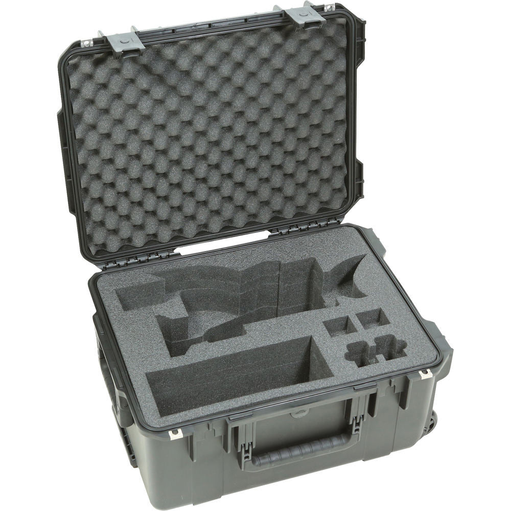 The SKB iSeries Sony Video Camera Case with Wheels & Pull Handle is made of high-strength polypropylene copolymer resin and has a custom cut polyethylene foam interior for the Sony FDR-AX1, PXW-Z100, HDR-FX1000, HVR-Z5U, HDR-AX2000, HXR-NX5U, or HXR-NX3. There are also additional pre-cut sections for batteries, memory cards and a large accessory pocket that can fit an additional shotgun microphone or other accessories. Convenient wheels and a pull handle provide easy transport.