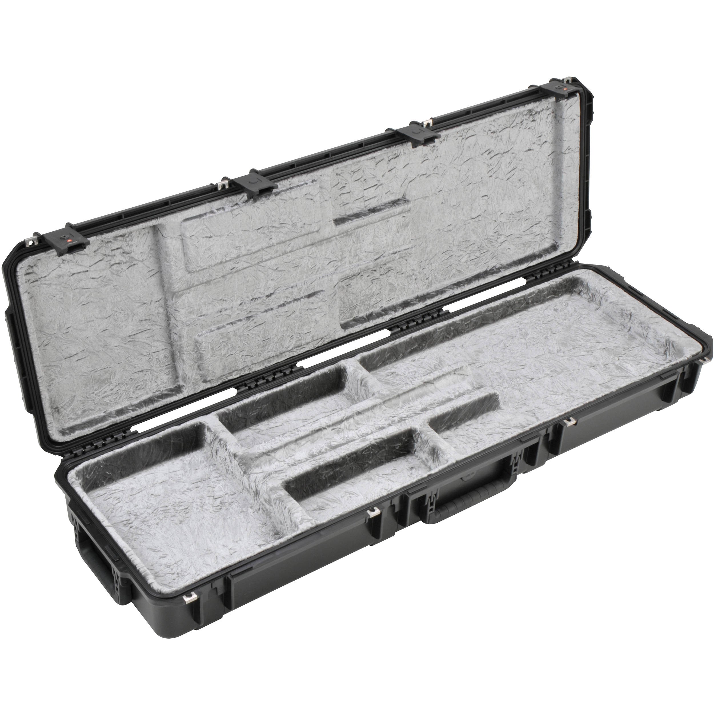 The iSeries Waterproof Open Cavity Flight Case for Bass Guitar from SKB is designed to accommodate a large variety of bass guitars. The case's interior is plush lined and injection molded for neck and body support. Constructed of polypropylene copolymer resin, the case's exterior features a gasketed, waterproof, submersible design that is resistant to corrosion and impact damage. The stainless-steel molded-in hinge trigger release latch system is recognized and accepted by the TSA, and also has 4 reinforced locking loops for your own supplied locks. The snap-down rubber over-molded grip handle and quiet-glide wheels are designed for easy transport.