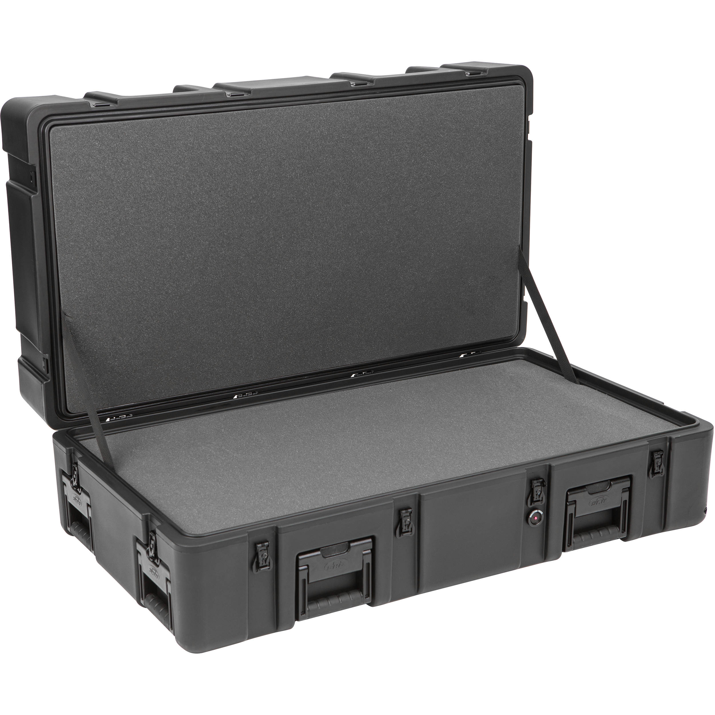 Store, transport, and protect your valuable gear in this black R Series 4222-14 Waterproof Utility Case with layered foam from SKB Cases. The case is waterproof, dustproof, and has LLDPE polyethylene impact-resistant construction, stainless steel latches, and a built-in purge valve. Carry the case with the large folding handles.