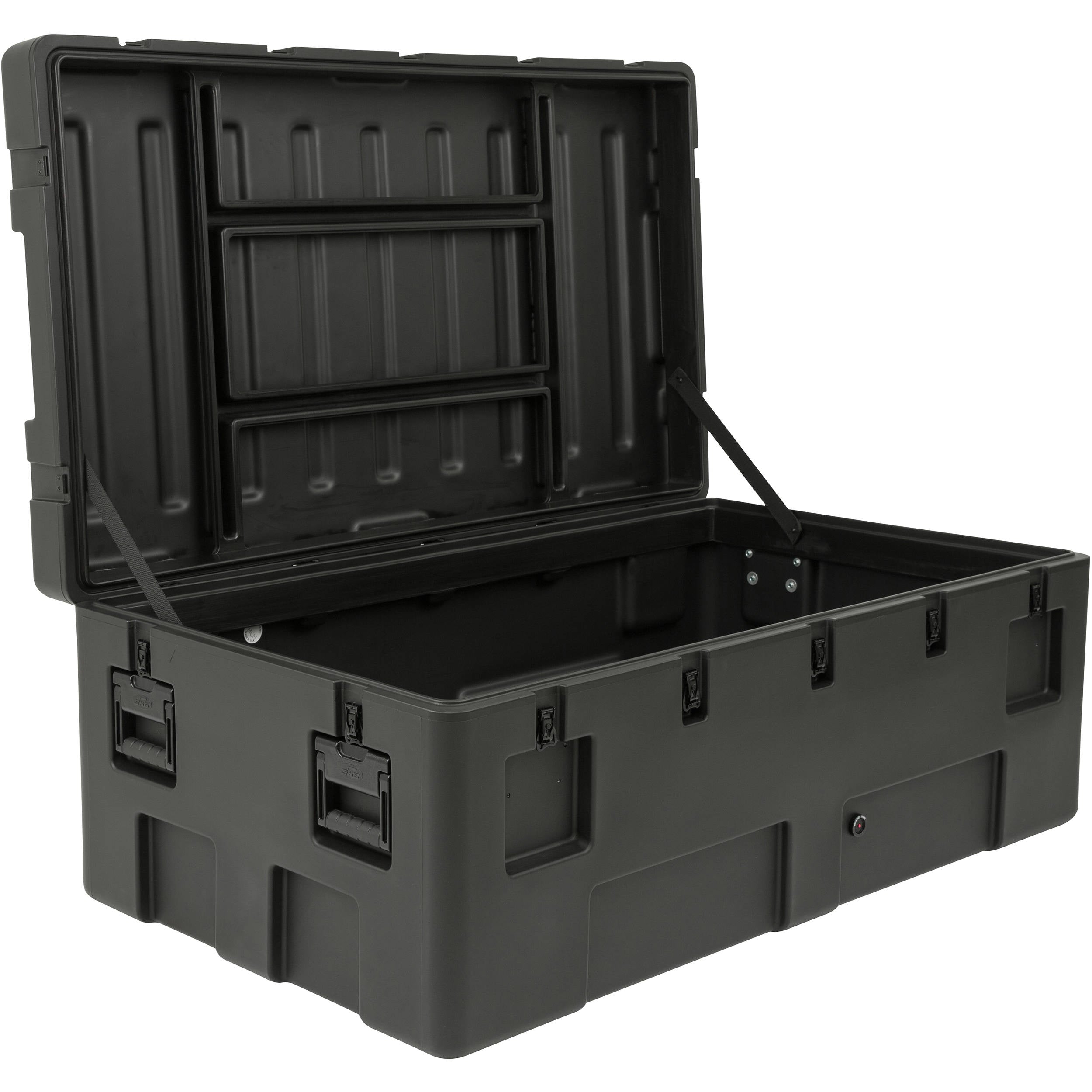 SKB Cases designed the R-Series 5530-20 Waterproof Utility Case to withstand the most extreme and demanding shipping, handling, and working conditions on the planet. The case is offered here with an empty interior to allow for customization and for full use of the interior space. Cubed foam, layered foam, and padded dividers are available separately. The case weighs 77.1 lb / 35 kg and is built from LLDPE polyethylene with stainless steel latches and hinges. The case is resistant to a variety of hazards that you may encounter, such as impacts, ultraviolet (UV) radiation, solvents, corrosion, and even fungi. Pressure relief and breather valves come into play especially during air transport by regulating the internal pressure, keeping your gear and the case from getting crushed and allowing you to open the case without having to break a tough pressurized seal that may develop.