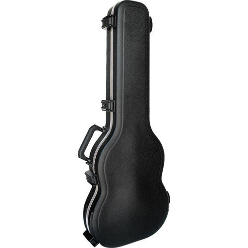 The SG Hardshell Guitar Case from SKB fits Gibson SG, Epiphone SG, and ESP LTV Viper series guitars, with the exception of the 12 string models. The case features full-length neck support and EPS interior foam to prevent the instrument from rattling during transport. The exterior of the case is made of polyethylene with molded-in bumpers for the valance protection system, and an over-molded handle. The nylon trigger release latches are reinforced with fiberglass and recognized and accepted by the TSA.