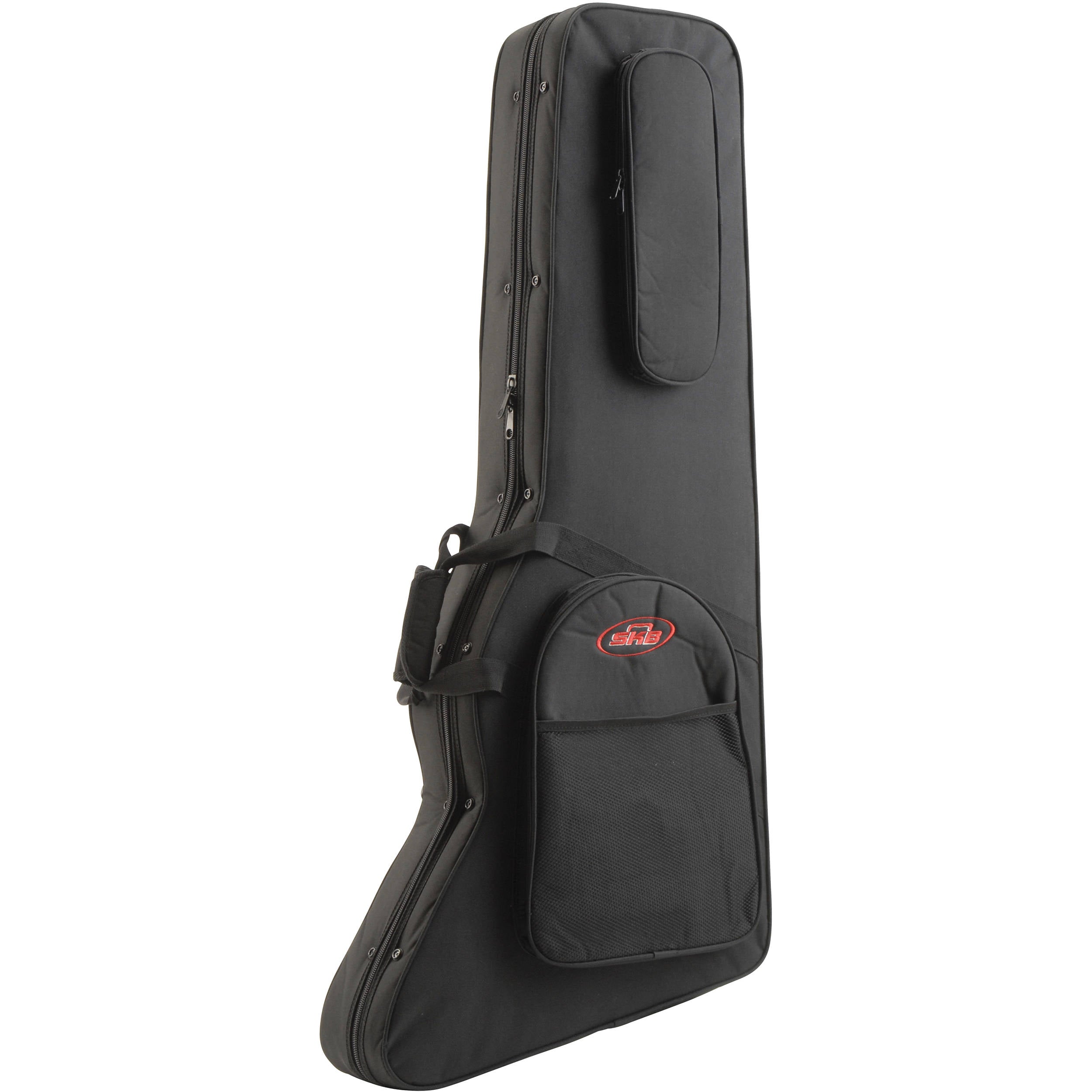The Soft Guitar Case by SKB fits Gibson Explorer- and Firebird guitars, and offers full neck and body protection. The case's exterior is made of weather-resistant 600 Denier ballistic nylon with an EPS foam interior. Featuring a double pull zipper, a carrying handle, padded backpack straps, and exterior accessory pouches, the case is designed to keep your instrument safe during storage and travel.