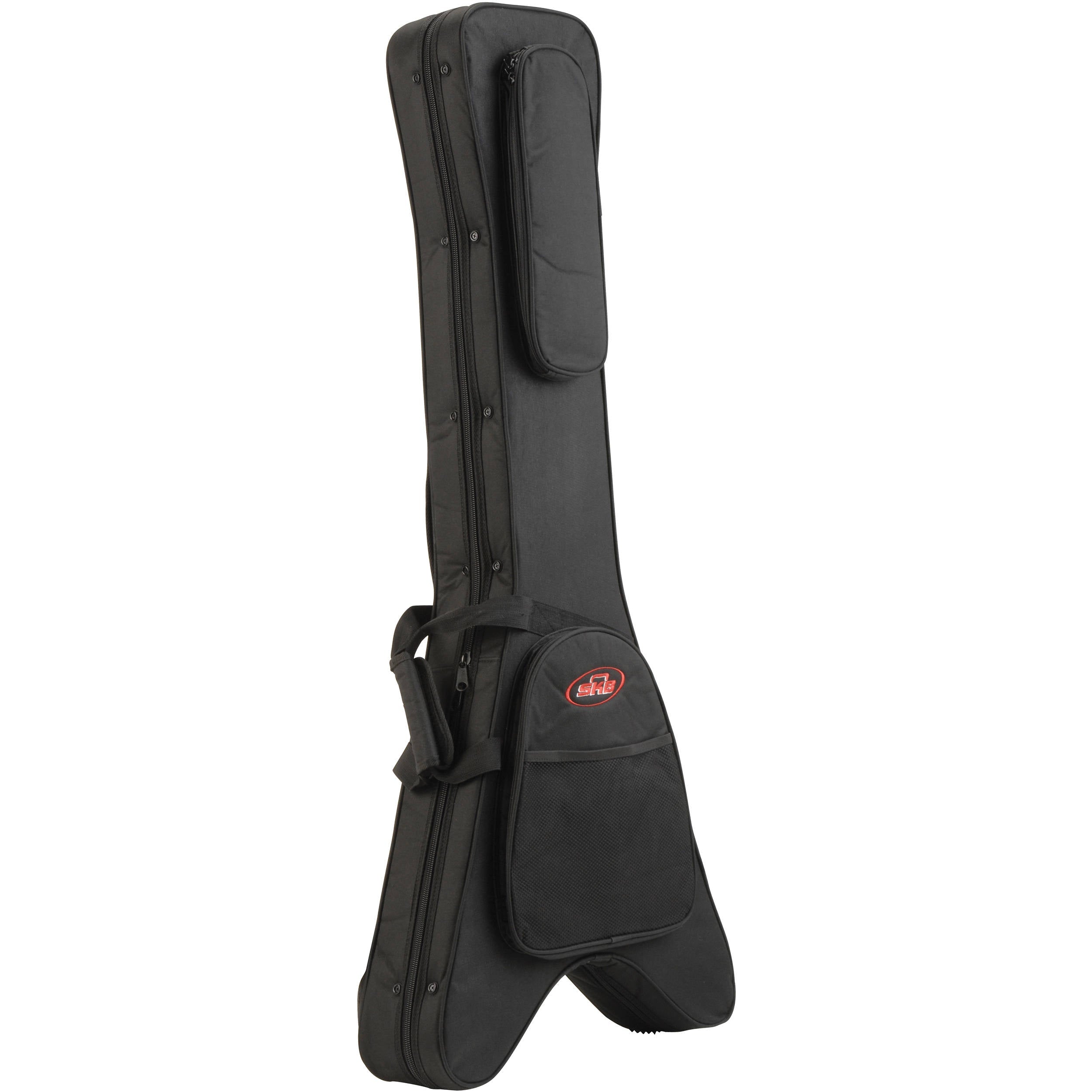 The Soft Guitar Case by SKB fits most Gibson Flying V guitars, and offers full neck and body protection. The case's exterior is made of weather-resistant 600 Denier ballistic nylon with an EPS foam interior. Featuring a double pull zipper, a carrying handle, padded backpack straps, and exterior accessory pouches, the case is designed to keep your instrument safe during storage and travel.